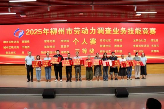 本次競賽內容涵蓋《勞動力調查制度》《廣西勞動力調查規范化實施細則》及統計法律法規知識,全市90名參賽選手同臺競技。經過激烈的比拼,柳江區拉堡鎮興柳社區覃菊科、祥和社區韋紅年、建都社區劉春萍獲個人賽二等獎,柳江區統計局黃麗珠、拉堡鎮柳東社區韋利銳獲個人賽三等獎,展現了柳江區勞動力調查隊伍精湛的業務技能和奮發有為的精神風貌。