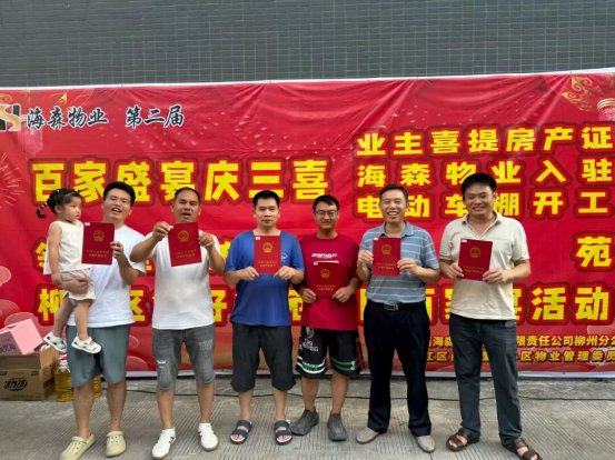 為熱烈慶祝小區業主順利取得房產證,同步慶賀廣西海森物業有限公司正式進駐及電動車棚建設開工,拉堡鎮尚好鑫苑小區于9月14日下午隆重舉辦百家宴活動。