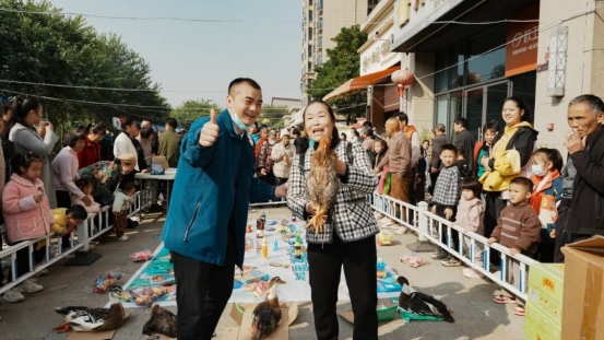 活動伊始,趣味游園會率先點燃鄰里熱情。“套中了!套中了!”一位阿姨在套圈游戲中成功收獲肥雞。鏟米大戰、零食抱抱項目中,鄰里相互鼓勵、彼此喝彩,彰顯出友愛互助、文明參與的精神風貌。