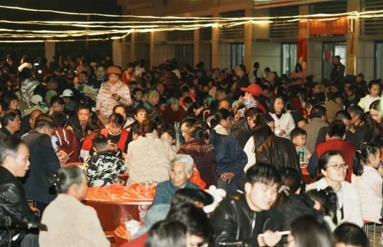 傍晚6點,百家宴正式開席。業主共享殺豬宴與精彩的節目表演,各家各戶也紛紛端出精心準備的拿手菜肴。一聲“開席嘍——”伴著撲鼻香氣傳遍小區,150張餐桌蜿蜒排開,平時擦肩而過的鄰居,變成了同桌吃飯的“一家人”。