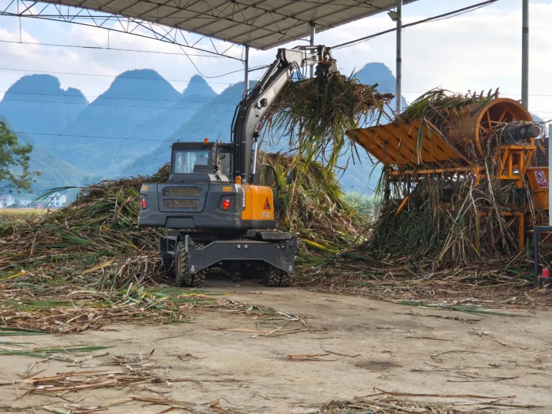 在柳江區(qū)三都鎮(zhèn)白見村的甘蔗分步式機(jī)收加工站,現(xiàn)場(chǎng)忙碌異常,甘蔗分步式機(jī)收設(shè)備一字排開,履帶“噠噠”作響。群眾種植的甘蔗從蔗田到糖廠的中間環(huán)節(jié)均采用機(jī)收方式,一批批甘蔗被快速剝?nèi)~、切段、蔗葉粉碎、裝車一氣呵成,現(xiàn)場(chǎng)一派繁忙的豐收景象。