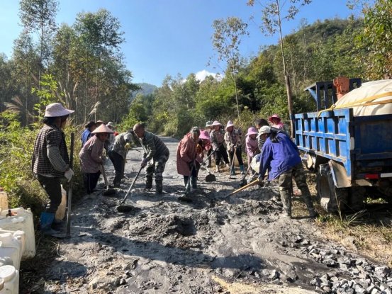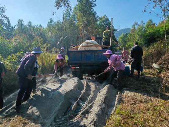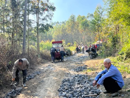 村民們分工協(xié)作,有的在敲擊石塊填平坑洼處,有的在平整剛倒下的水泥,有的則往返運(yùn)送著水泥等建材……現(xiàn)場敲擊聲、談笑聲交織在一起,大家干勁十足,像一首充滿活力的鄉(xiāng)村交響曲,奏響了鄉(xiāng)村振興的奮進(jìn)旋律。